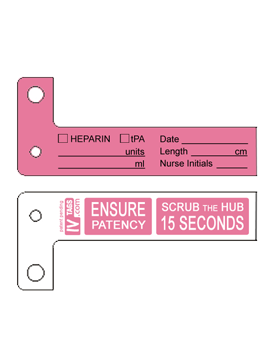 IVtags® serve as a simple and effecitive way to communicate to nursing staff. Port labeling options include many of the common line specific pieces of information, and a nursing reminder for Scrubbing the Hub 15 seconds and Checking Patency will inprove compliance to central line maintenance policy. IVtags® Communicating at the Bedside...Where Its Most Important!
